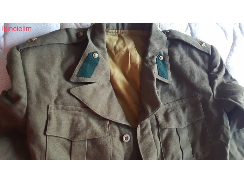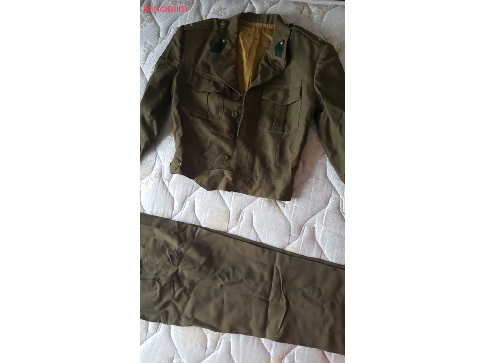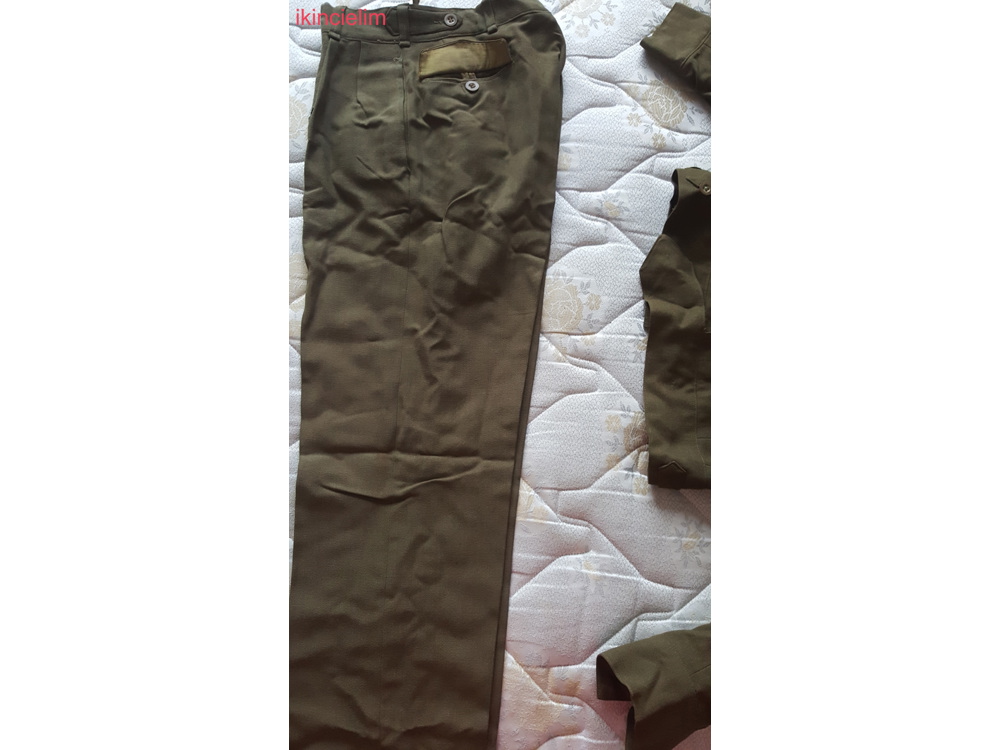 Ceket ve pantolon olarak iki parçadan oluşan askeri üniforma.