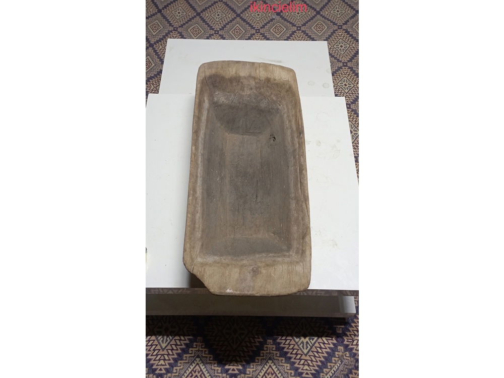 antika küçük boy el oyması hamur teknesi böyle küçüğü kolay bulunmaz uç kısmında bi parça eksik mi öyle mi yapılmış bilmiyorum iç kısımlarında göze batmayan çatlaklar mevcut buram buram antika kokan bi hamur teknesi aklınıza takılan soruları sorup bilgi alabilirsiniz iade yoktur alana hayırlı olsun