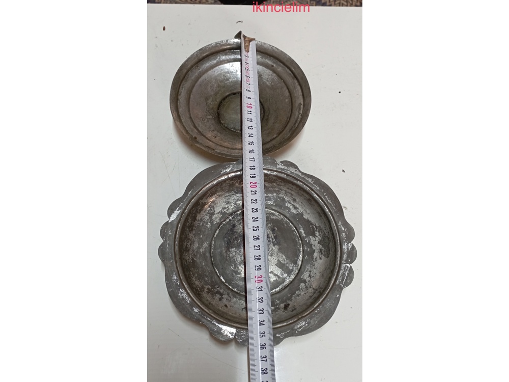 antika bakır kırpıklı ve kapaklı tabak ölçüleri resimlerde mevcut aklınıza takılan soruları sorup bilgi alabilirsiniz iade yoktur alana hayırlı olsun
