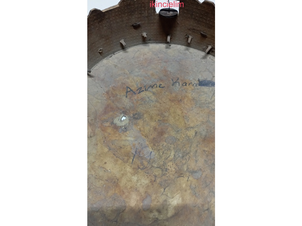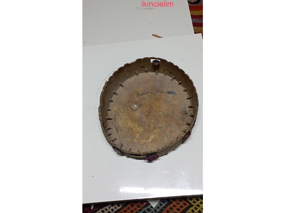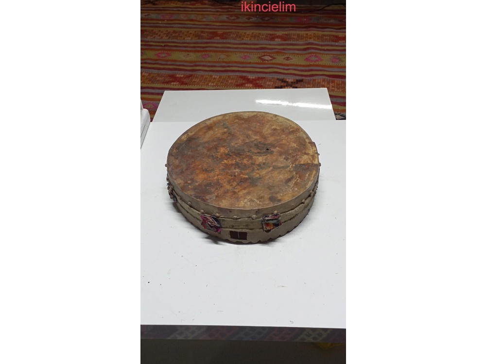 antika her işçiliği elle yapılmış deri gerdirmesi bile ağaç çakmalarla yapılmış nadir bulunan deri oyun tefi zamana bağlı olarak küçük delinmeler ve zillerinde eksilmeler olmuş ama hala kullanılır durumda üzerinde 1939 tarih li sanırım sahibine ait isim soy isim yazmakta aklınıza takılan soruları surup bilgi alabilirsiniz iade yoktur alana hayırlı olsun