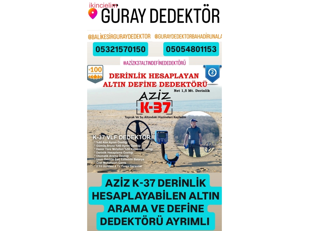 AZİZ K-37 DERİNLİK HESAPLAYABİLEN ALTIN ARAMA ve DEFİNE DEDEKTÖRÜ