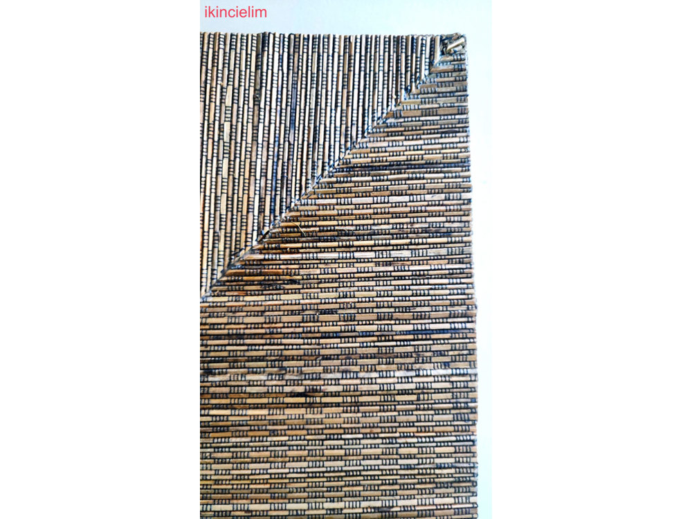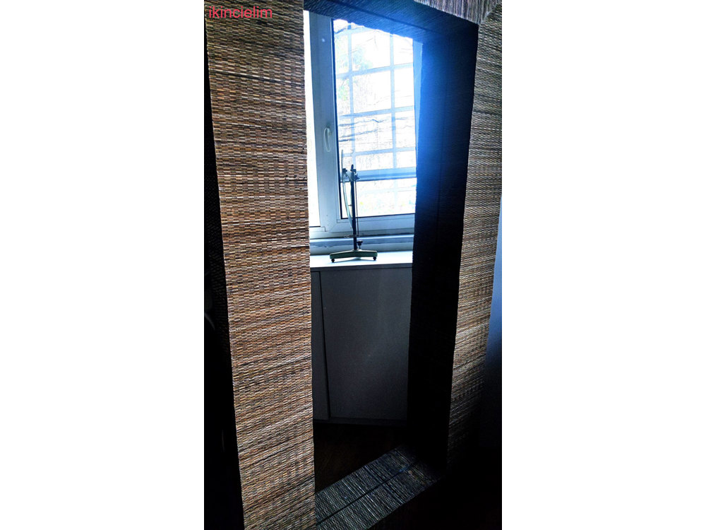 Hasır çerçeveli büyük boy aynaDış çerçeve ölçüsü: 150 x 75 cm İç ayna ölçüsü: 119 x 44 cm. Fotoğrafta görüldüğü gibi alt çerçevenin iç bölümünde ufak bir defo vardır. Piyasada bu ince çubuklar satılmaktadır. İsteyen tamamlar. Bu yüzden fiyat uygun tutulmuştur.
