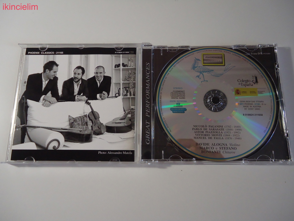 Davide Alogna. Keman. CD. 2011. İtalyan kemancı Davide Alogna İtalyan bestecilerin eserlerini seslendiriyor. Gitarlarıyla Marco ve Stefano Bonfanti de eşlik ediyor. Tertemiz. Yeni gibi. Made in Austria..