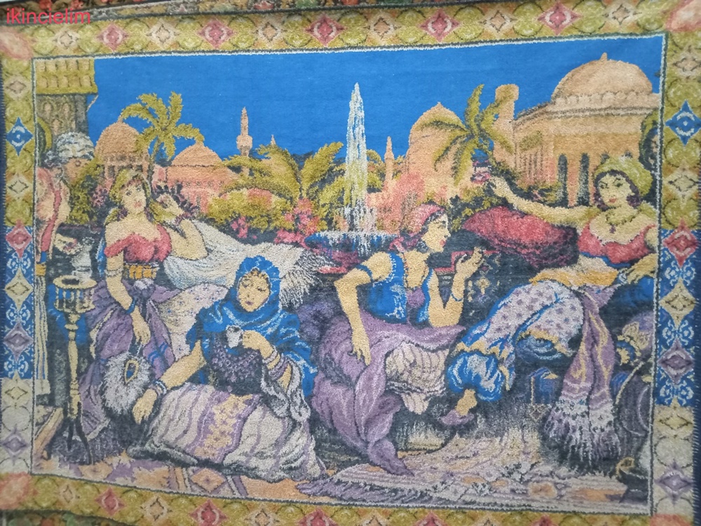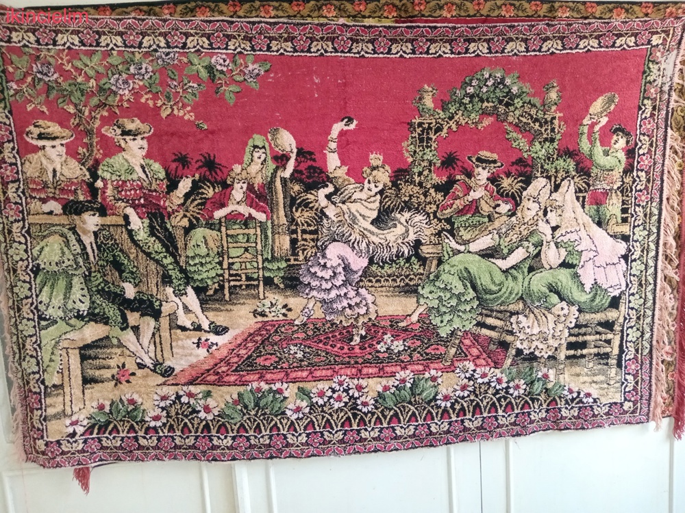eski dönemlere ait falcı bacı modeli duvar halısı.. 60.70 yıllık. 110x150cm ebatinda.