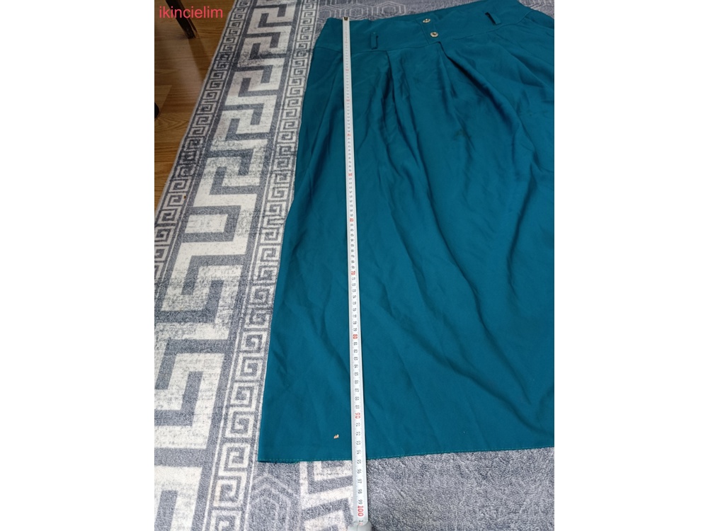 canlı yeşil fotoğraflarda farklı çıktı aldanmayın midi boy, bol kesim hamile eteği, drapeli tasarıma sahip, yumuşak sentetik kumaştan. Baskılı deseni günlük kullanım için uygundur.