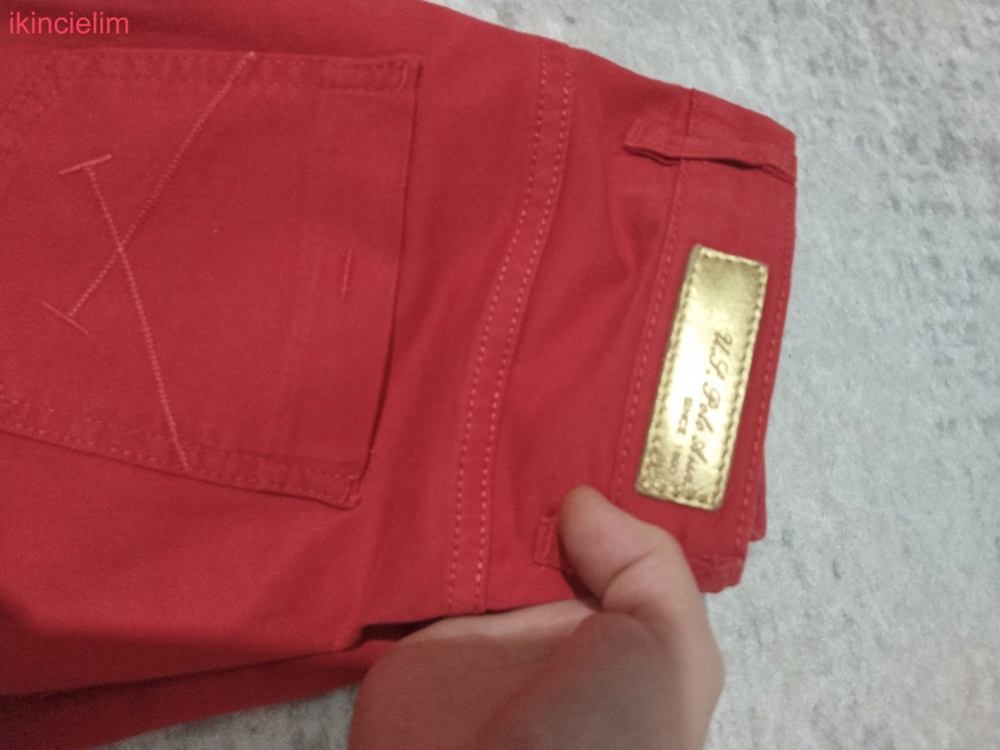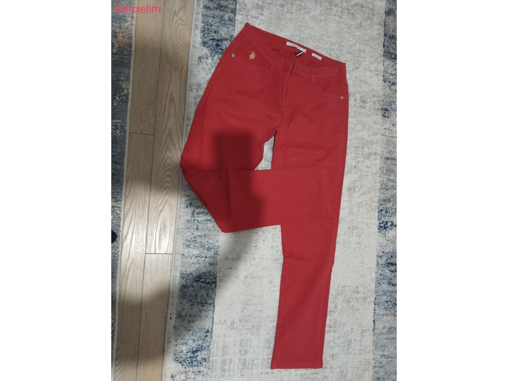 kırmızı renkte likralı rahat kumaş, hasarı yok yeni gibi