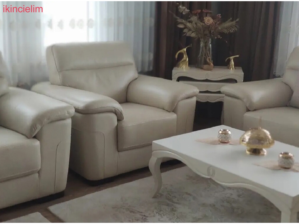 ofis ve evinizde rahatlıkla kullanabileceğiniz Çok şık bir oturma grubu çok temiz kullanılmış kullanıldığında deri sütü ile silinmiş hiçbir deformesi veya yırtığı yok çok temiz bir ürün yurt dışında olduğumuzdan dolayı çok az kullanılmış yani neredeyse üzerilerinde hiç oturulmamış alacak olana şimdiden hayırlı olsun
