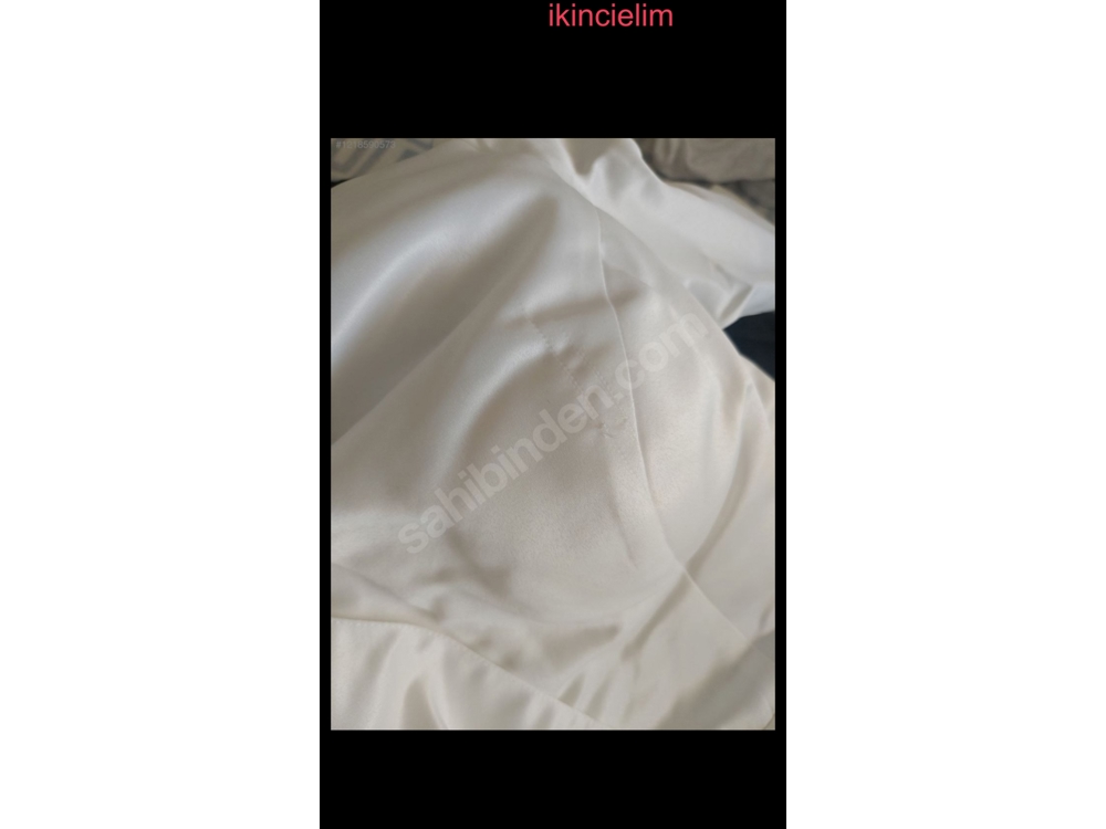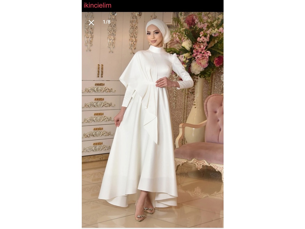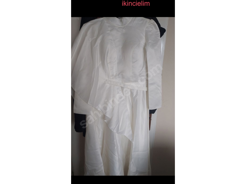 saten kumaş tesettür abiye elbise sıfır elbise hiç giyilmedi ön kısmında ip kaçığı var
