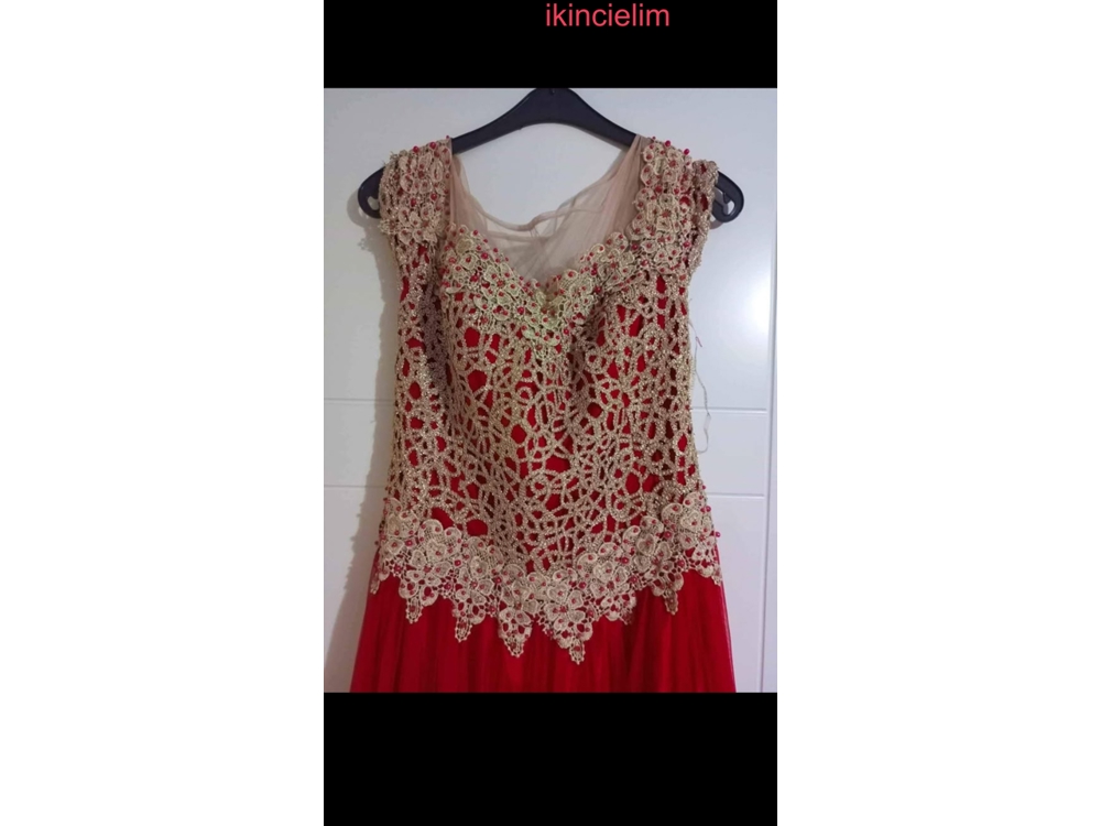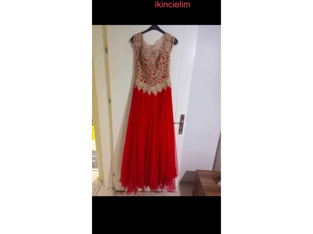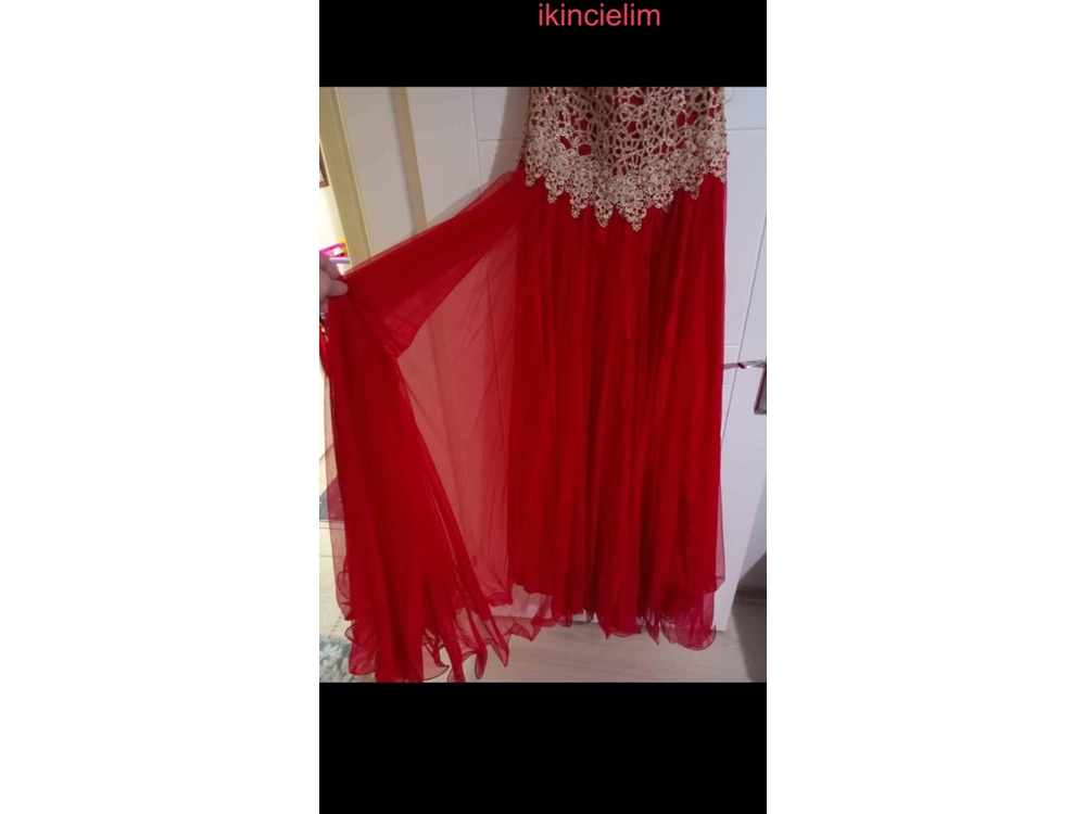 kırmızı boncuk işlemeli etekleri tül ucuş ucuş kloş etek elbise