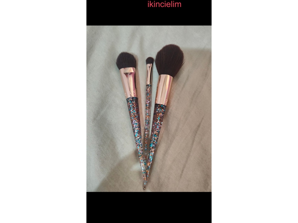 3lüpaket fondoten far ve pudra fırçası bulunmaktadır fırçalar yeni gibidir cok az kullanılmıştır