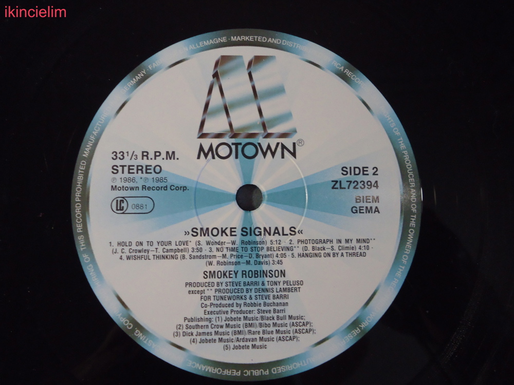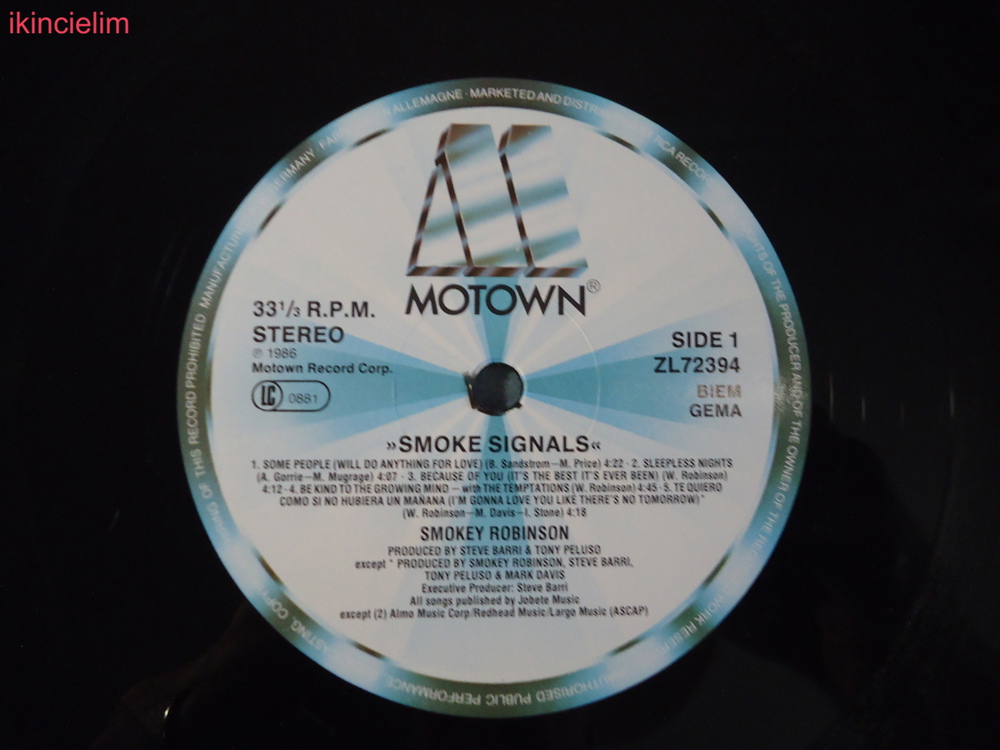 Smokey Robinson - Smoke Signals albümü. LP. Stereo. 1986. Made in Germany. Tertemiz. Plak 8/10, kapak 8/10..