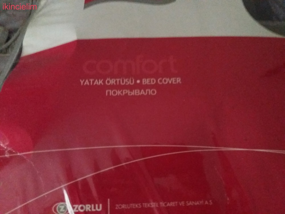 Kadife ve satenin eşsiz uyumundan oluşan, çift kişilik, yatak örtüsü, 3 parçadan oluşmaktadır, taç marka, hediye geldi ama hiç kullanılmamııştır.
