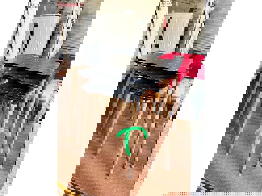 çok uygun fiyata neredeyse hiç kullanılmadı siyah zemin kahverengi ayaklı üçlü zigon sehpa